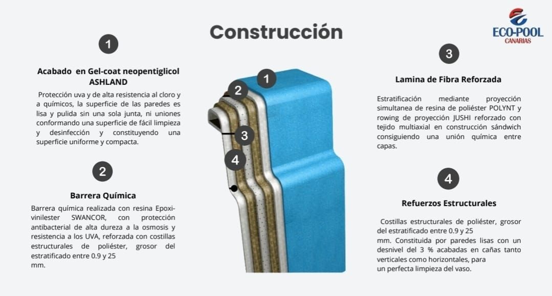 Con Eco-Pool, Elige la mejor piscina de fibra en Canarias. Tenemos más de 20 años de experiencia en piscinas prefabricadas.